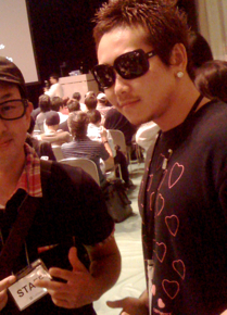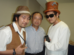 写真中央、言わずと知れた、ソフトバンクCEO、孫 正義氏と踊り終わったばかりの黄帝心仙人!さらに、今回、ソフトバンク×黄帝心仙人を実現させたプロモーター横山泰三氏(ネームレスプロダクション)。これは、うらやましい・・・(笑)